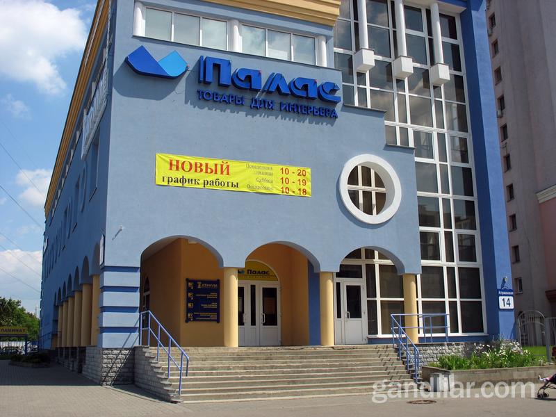 Фото магазина "Палас" в Минске, адрес и телефон. Этот магазин находится по адресу ул. Острошицкая, 14 и является самым большим в сети магазинов отделочных материалов "Палас".
